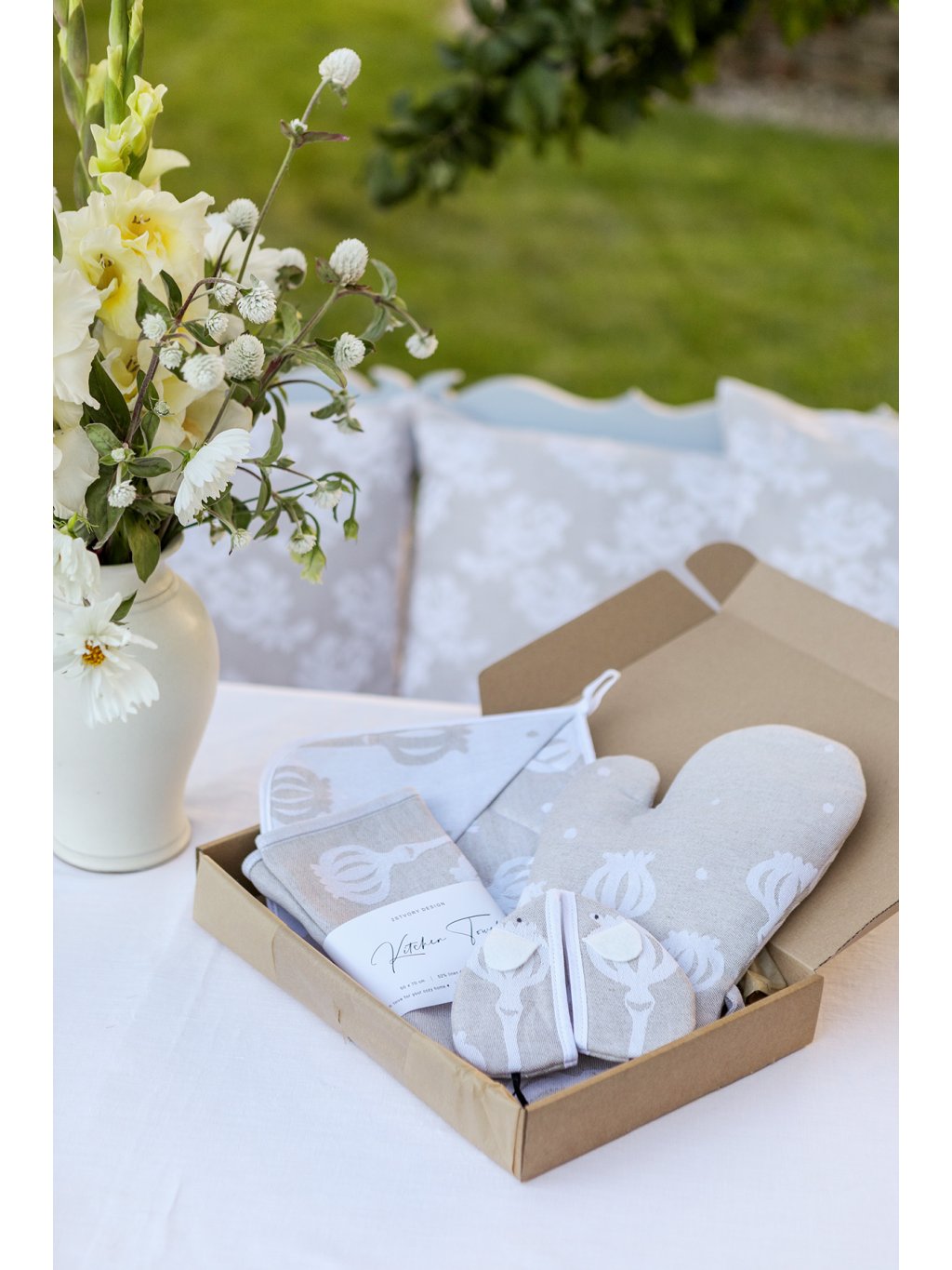 Táto darčeková sada do kuchyne obsahuje výber našich obľúbených žakárových doplnkov do kuchyne, krásne zladených a pripravených na každodenné použitie. Je ideálna ako dar k sviatku, na kolaudáciu alebo len tak pre radosť niekomu blízkemu.