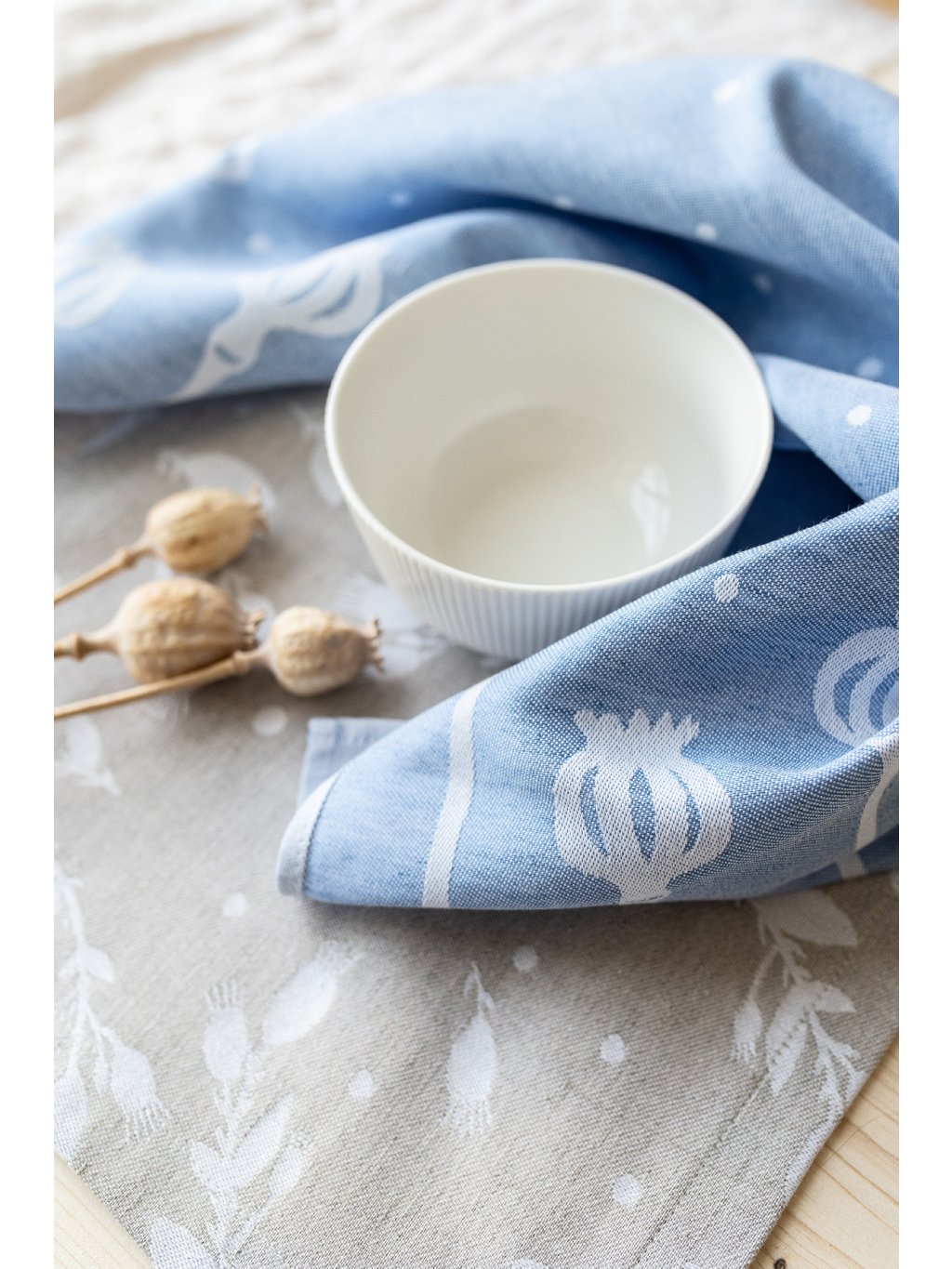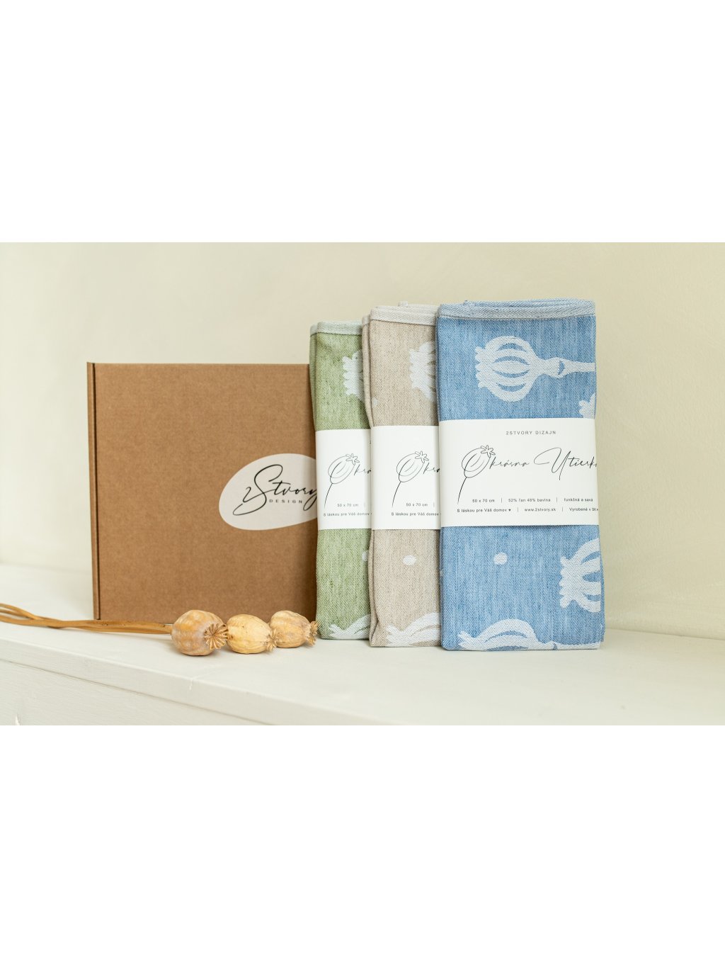 Darčeková sada 3 kusov žakárových utierok v našom autorskom dizajne Poppy Pods (Makovičky).