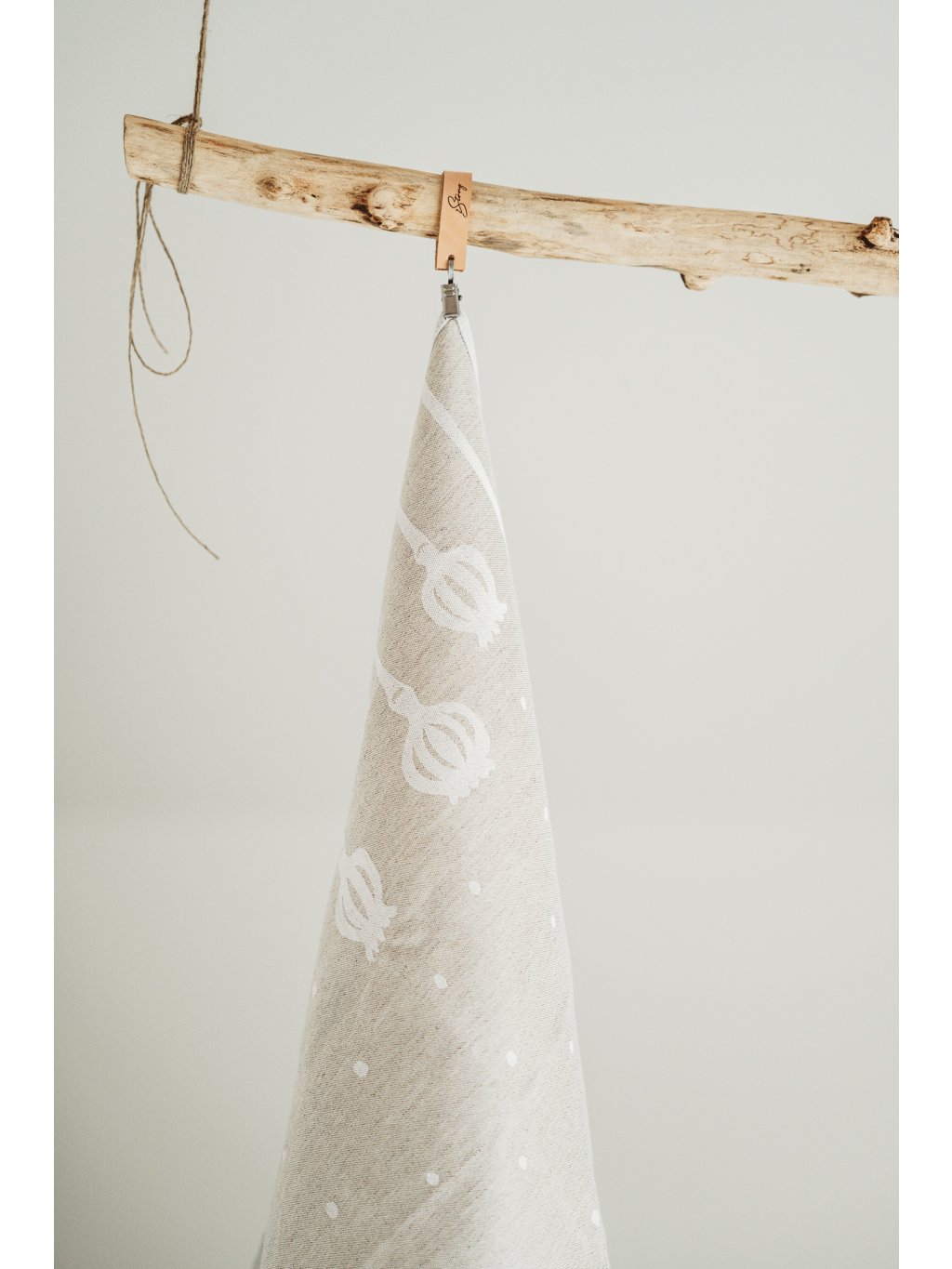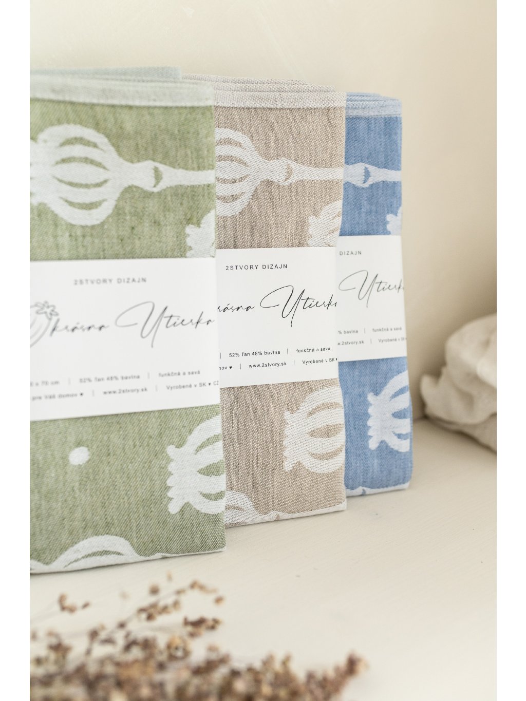 Spracovanie: žakárové tkanie vytvára obojstranný vzor a vďaka tomu sú utierky z oboch strán vizuálne atraktívne. Doplnené o pútko na jednoduché zavesenie.