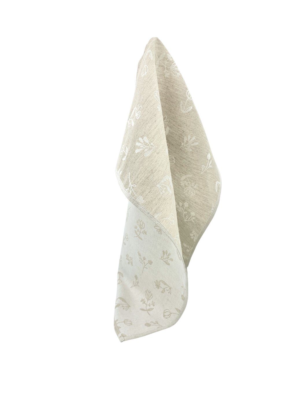 Linen kitchen towel with subtle floral jacquard pattern in a soft natural beige tone is both a practical and aesthetic addition to any modern home. It combines high-quality craftsmanship with timeless design to bring beauty and ease to everyday kitchen moments.