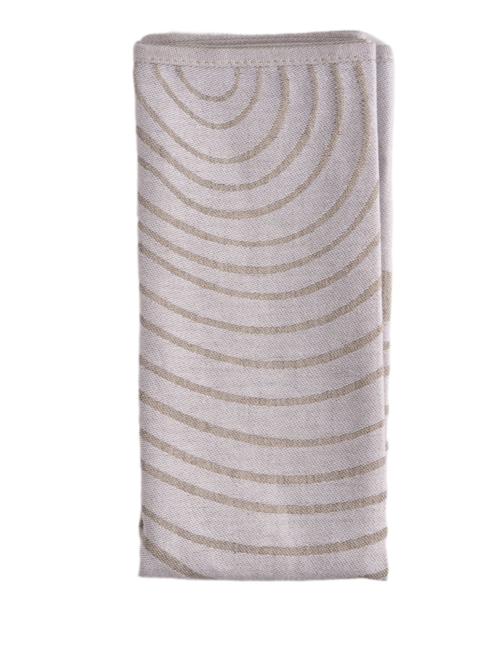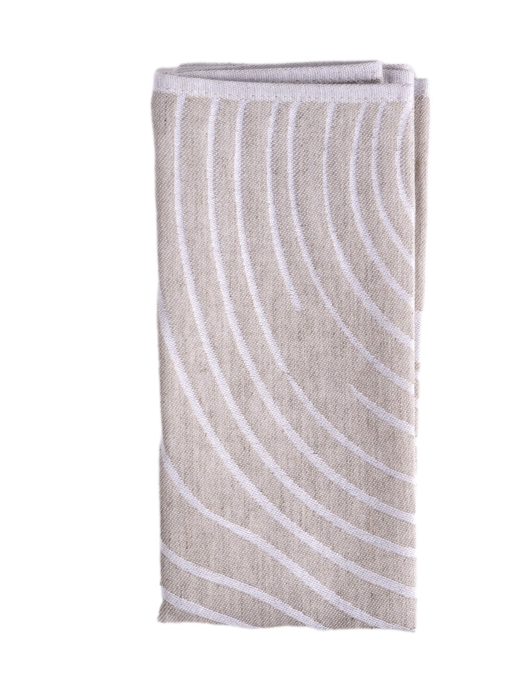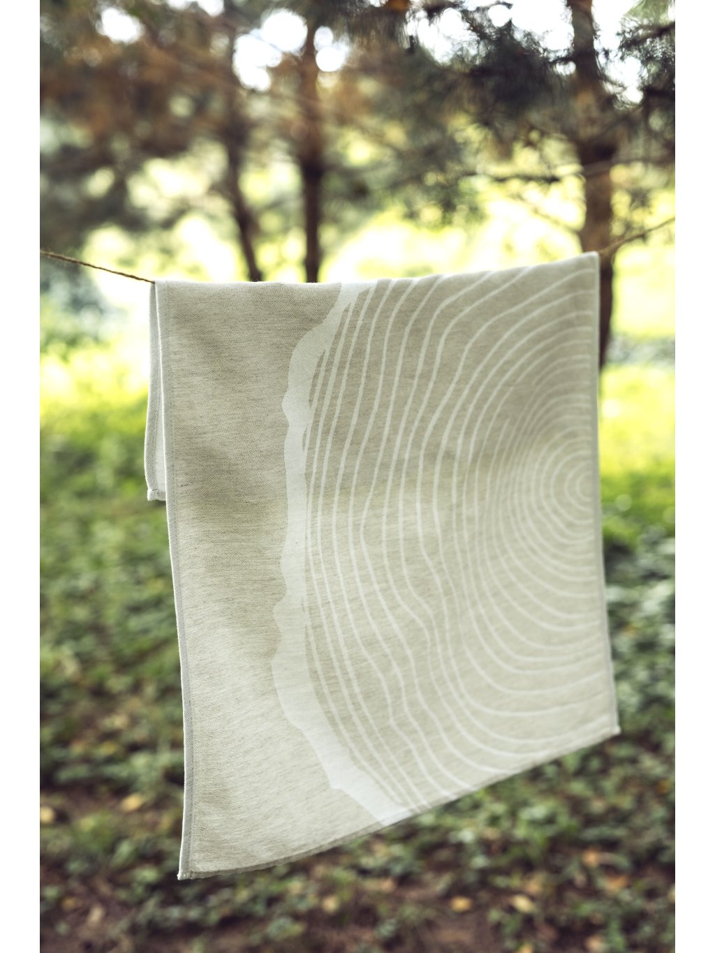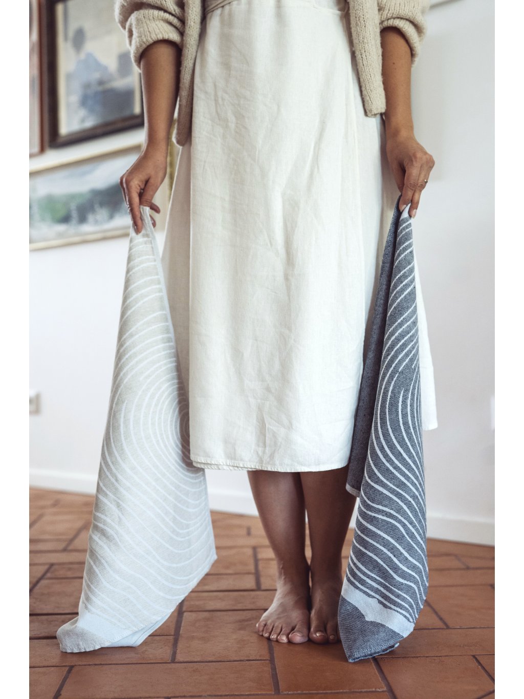 Linen-cotton kitchen towel Tempora jacquard-woven with a delicate pattern in natural or grey tones.