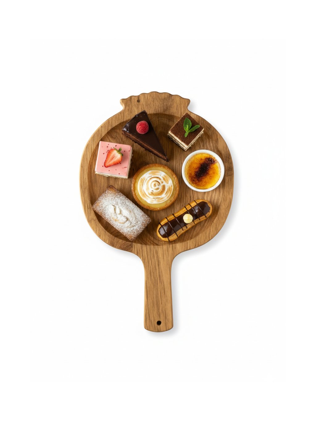Its surface is treated with natural BIO mineral oil, making it safe for wooden utensils that come into contact with food. One side is flat like a cutting board, while the other is gently hollowed out, serving as a bowl for nuts, dried fruit, or desserts.