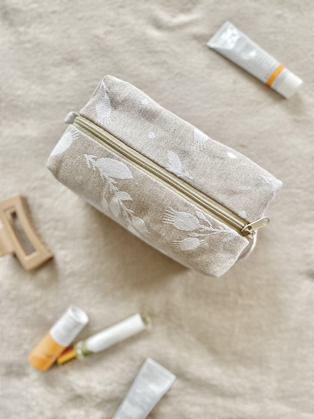 Táto stredne veľká kozmetická taštička je vyrobená z našej originálnej žakárovej látky s autorskými tkanými vzormi – Poppy Pods, Rosehips, Garden. Je praktickou a krásnou voľbou na cesty, dni oddychu či na každodenné drobnosti, ktoré chcete mať po ruke.