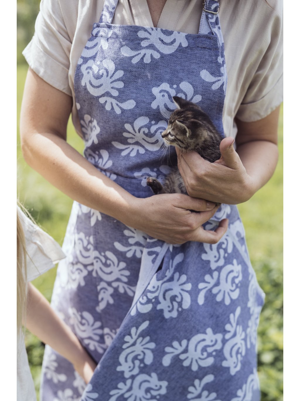 Táto ľanová kuchynská zástera je navrhnutá s dôrazom na eleganciu aj praktickosť – ideálna pre každodenné varenie, ale aj ako darček pre milovníkov štýlového bývania. Dizajn tkaniny vznikol v spolupráci s Ústredím ľudovej umeleckej výroby (ÚĽUV) pre projekt Otvorený ateliér.