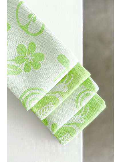 52% ľan 48% bavlna, limetková zelená, zelenina, ovocie a bylinky