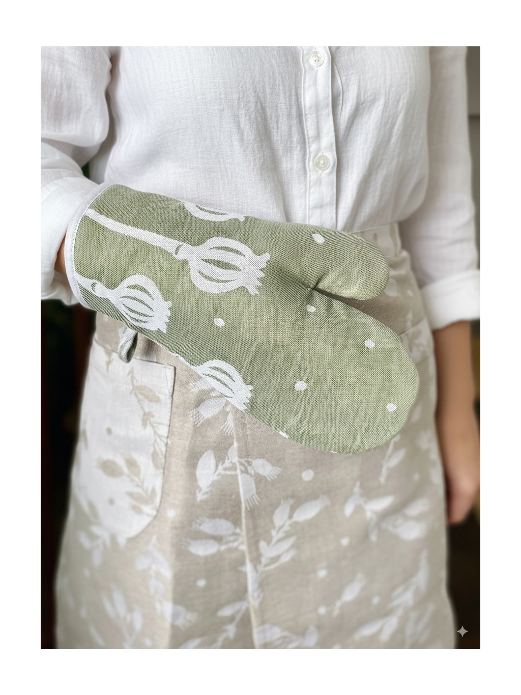 Ľanová kuchynská rukavica Poppy pods je praktický pomocník do každej kuchyne, ktorý chráni vaše ruky pri pečení aj varení. Ušitá z našej autorskej žakárovej látky v jemných prírodných odtieňoch.