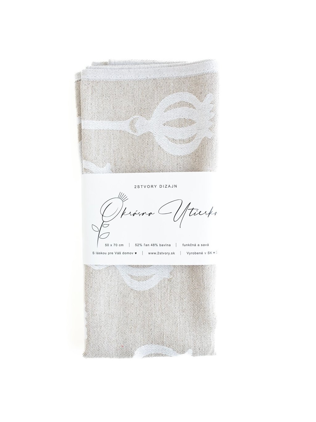 Spracovanie: Utierka je tkaná žakárovou technikou, ktorá vytvára kvalitný obojstranný vzor – krásny z oboch strán. Dopĺňa ju pútko na zavesenie pre jednoduché sušenie a uskladnenie.