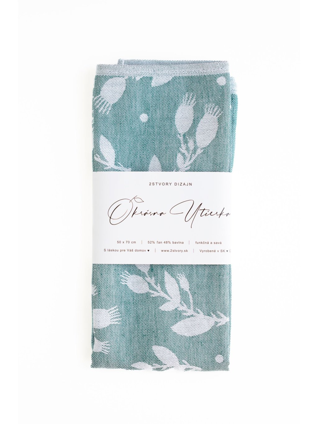 Spracovanie: Utierka je tkaná žakárovou technikou – obojstranný vzor vytvára zaujímavý vizuálny efekt z oboch strán. Je vybavená praktickým pútkom na zavesenie.