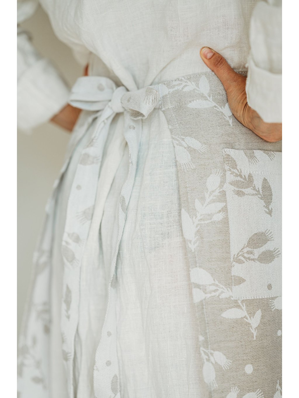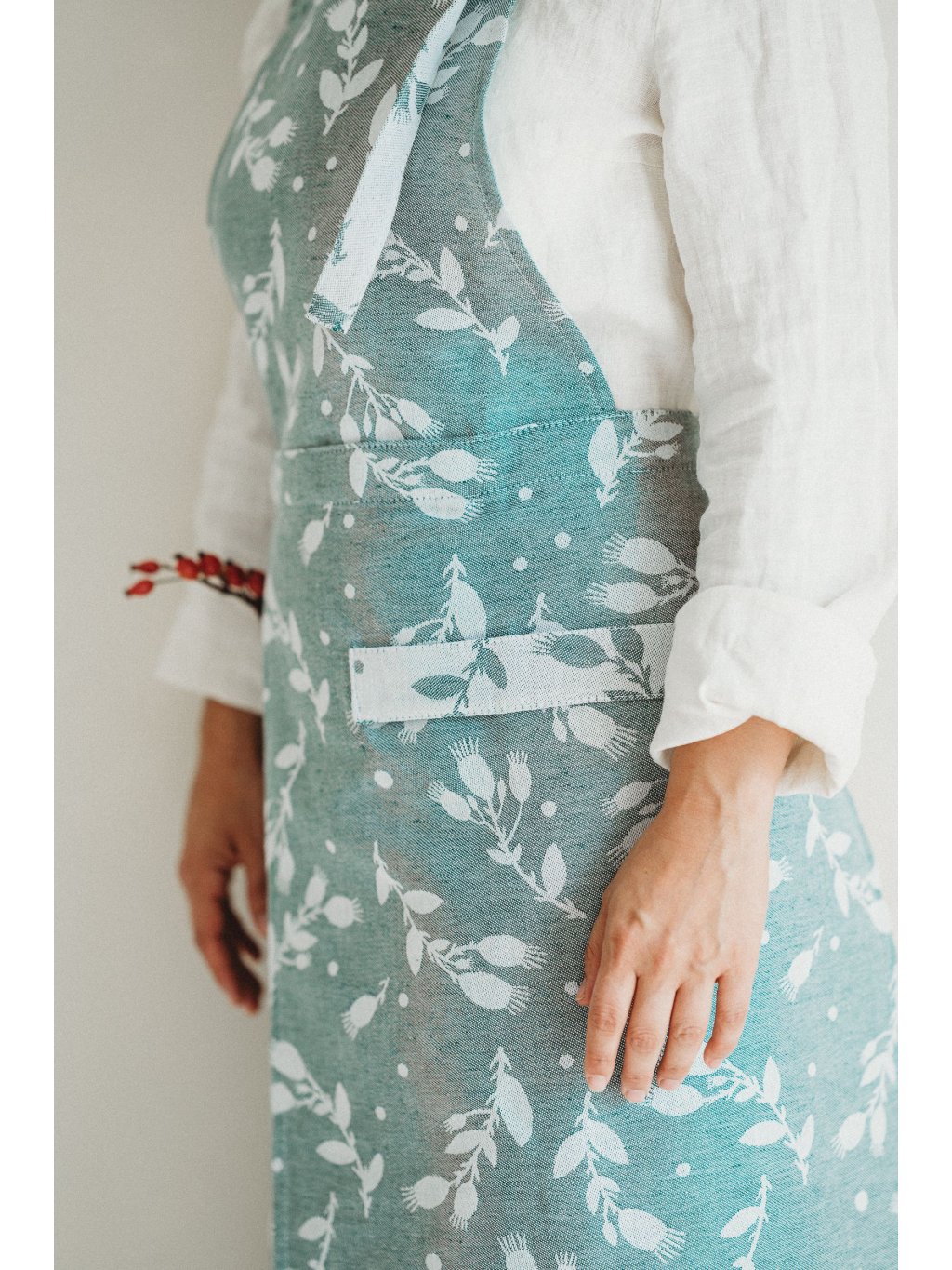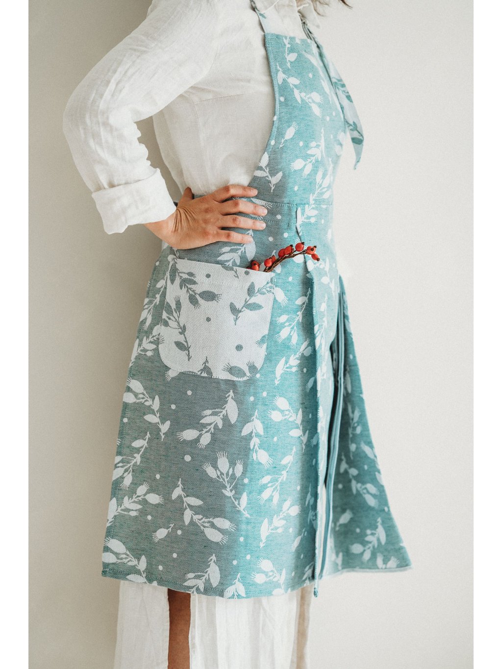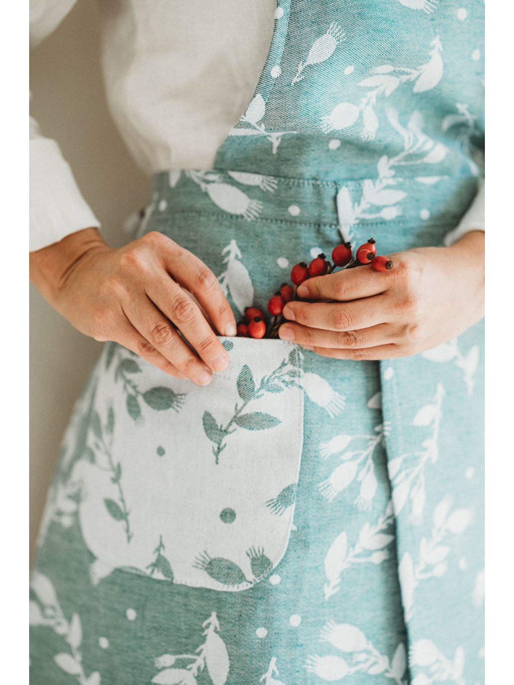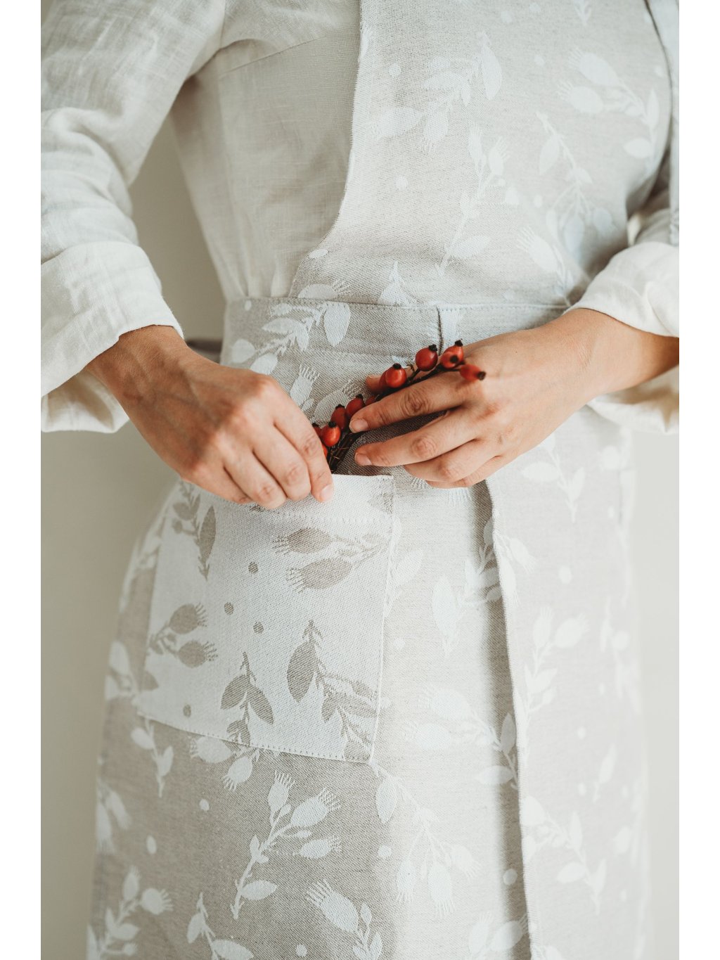 Staňte sa kurátorkou svojej kuchyne. Naša zástera so vzorom Šípky (Rosehips) nie je len ochranným odevom, je to dizajnový kúsok, v ktorom sa budete cítiť výnimočne, aj keď práve múka poletuje vzduchom. Autorský motív inšpirovaný slovenskou prírodou sme vtkali priamo do štruktúry látky, čím vznikol unikátny materiál s dušou remesla.